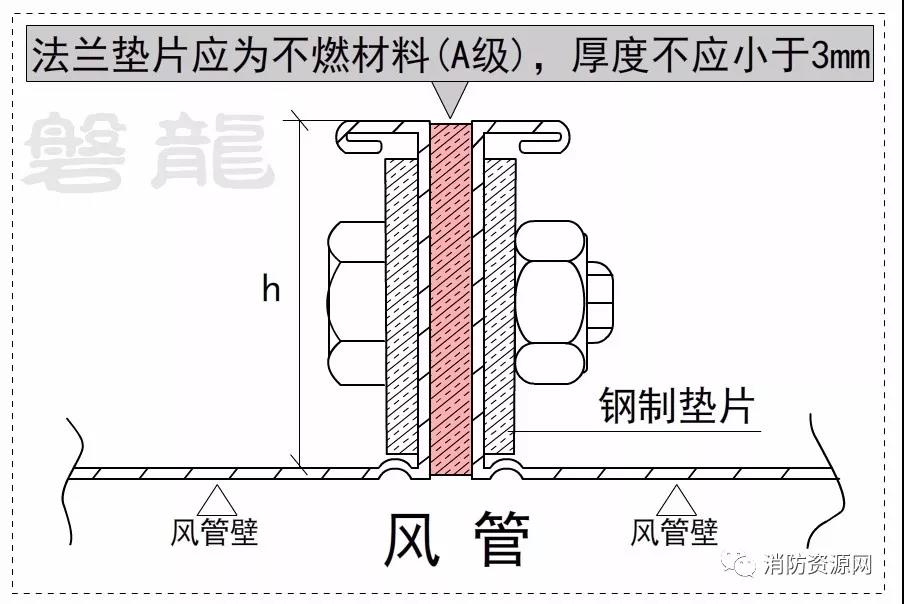 二、薄鋼板法蘭風(fēng)管應(yīng)采用螺栓連接,風(fēng)管接口的連接應(yīng)嚴密、牢固,法蘭墊片應(yīng)為不燃材料(A級),厚度不應(yīng)小于3mm,不應(yīng)凸入管內(nèi)和法蘭外。