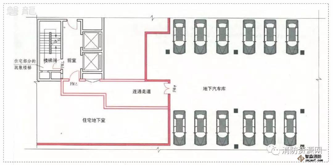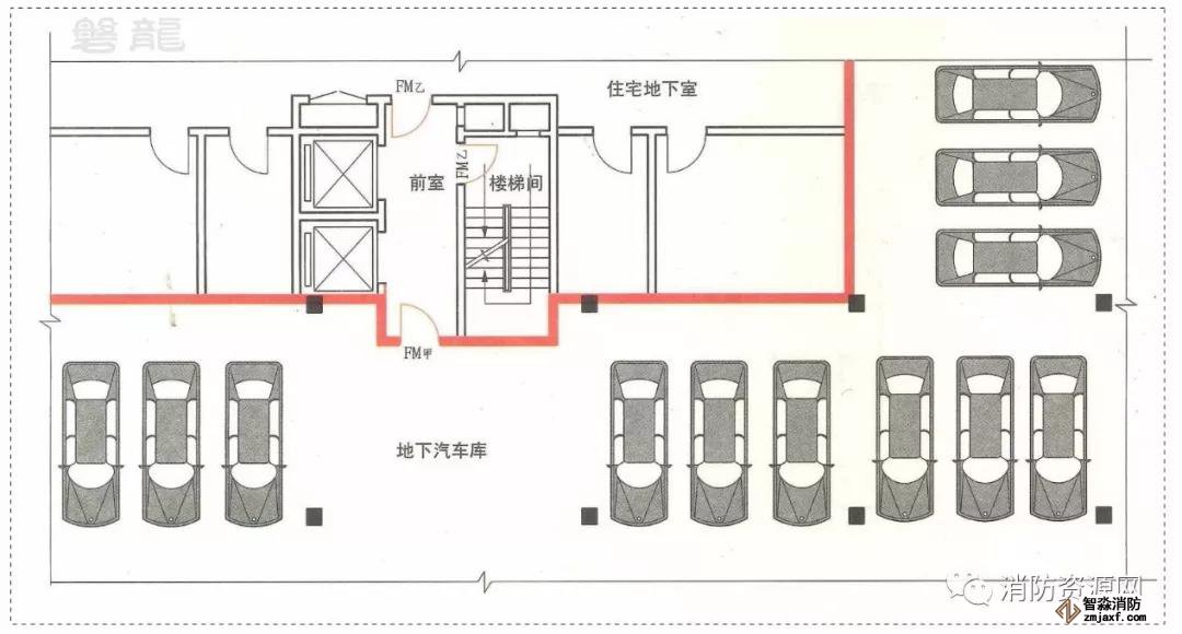 但在汽車庫中,除住宅地下室的情況外,汽車庫不得借用其他民用建筑的疏散樓梯!