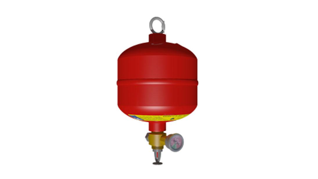 懸掛式七氟丙烷滅火裝置(溫控型)是七氟丙烷作為滅火劑,將滅火劑儲存罐體、快速響應(yīng)玻璃泡噴頭、壓力顯示部件等組件預(yù)先裝配成獨(dú)立的、可懸掛安裝(或固定于墻壁上)的、火災(zāi)溫度達(dá)到預(yù)設(shè)定溫時(一般為68℃)可自動啟動噴放滅火劑的一類滅火裝置。